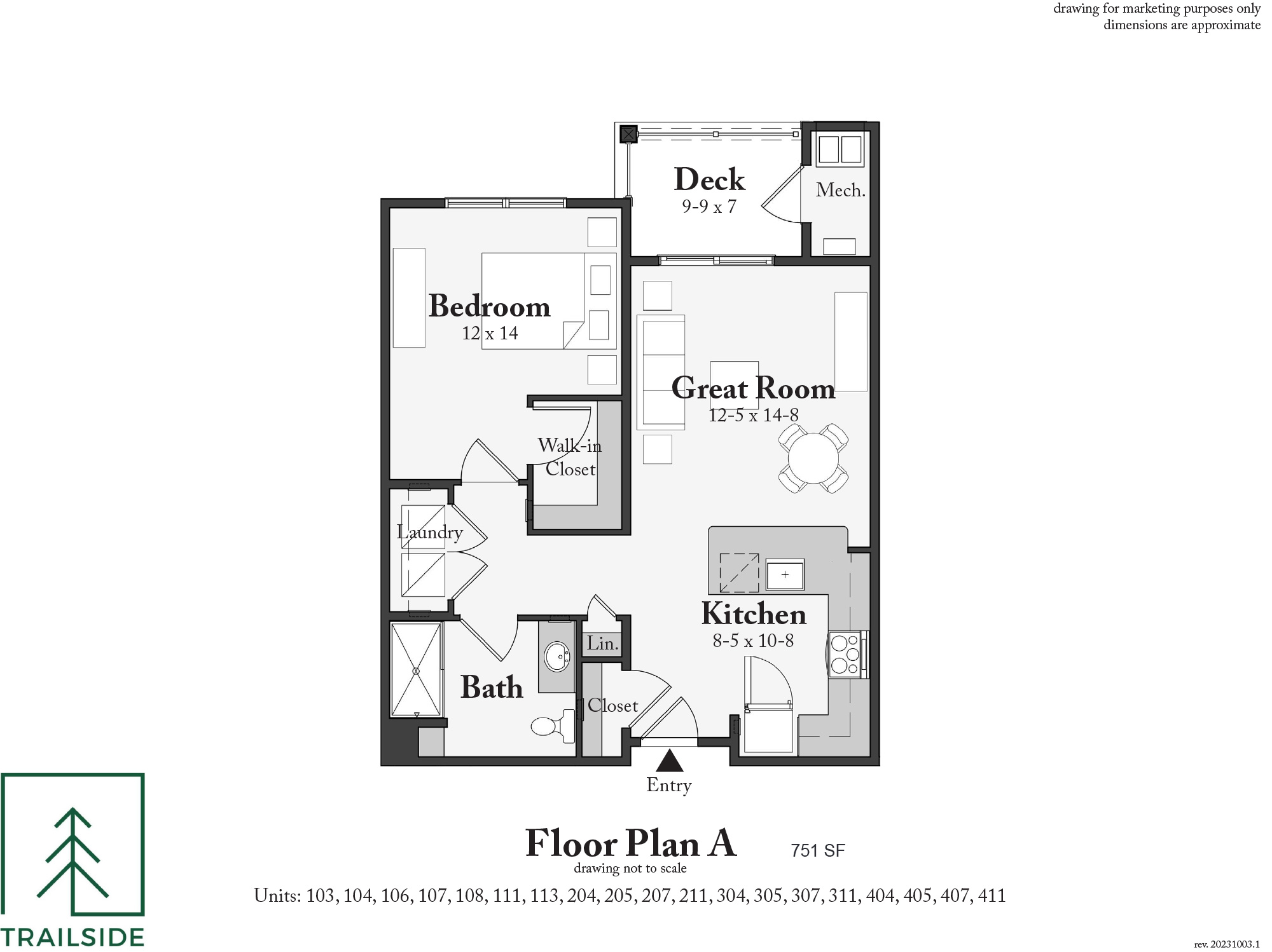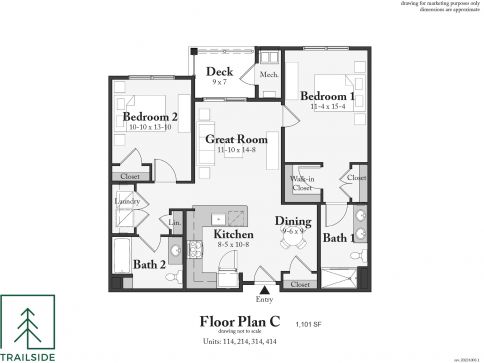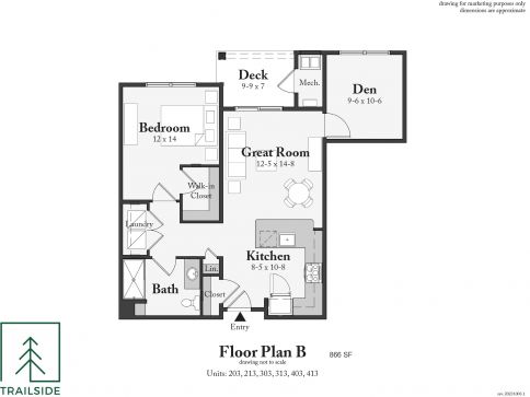 Smart features designed for the way you live. That means providing an extraordinary level of service, well-thought out amenities, and details in the finishes of your home. Trailside Bolyston offers several floor plans to optimize your lifestyle in your new home, including variations of 1 bedroom, 1 bath, 2 bedroom, 2 bath, and 3 bedroom, 2 bath. All homes offer in-home laundry, ample closet/storage space, and a deck or patio.